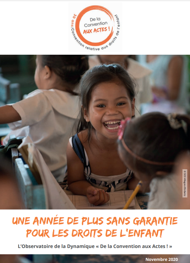 À l’occasion du 31e anniversaire de l’adoption de la Convention relative aux droits de l’enfant, la Dynamique « De la Convention aux Actes ! » publie un observatoire intitulé Une année de plus sans garantie pour les droits de l’enfant. Dans ce nouveau livret, la Dynamique fait un suivi de l’évolution (avancées, reculs et stagnations) des droits de l’enfant en un an. Et ce, dans huit domaines majeurs : gouvernance, éducation, environnement, justice, participation, précarité, protection et santé. Ce document s’appuie sur le travail mené en 2019 pour la rédaction du livret Droits de l’enfant : De la convention aux actes.